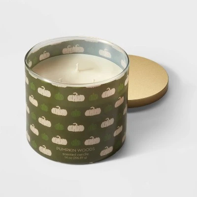 Set the right mood at home with the 14oz Pumpkin Woods Jar Green and Ivory Pumpkins with Lid Halloween Candle Off-White from Hyde & EEK! Boutique™. This candle comes in a lidded glass jar and the pumpkin and woodsy scents gives a refreshing vibe. With a burn time of up to 40 hours, you can store this Pumpkin Woods Jar Green and Ivory Pumpkins with Lid Halloween Candle and light it up when you need a well-deserved break.