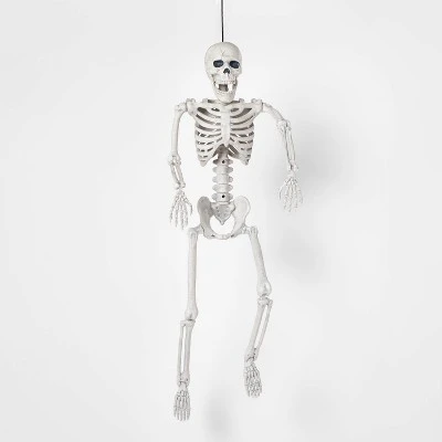 Add creepy fun to your decor with this 24-inch Posable Skeleton M Halloween Decorative Mannequin from Hyde & EEK! Boutique™. This posable skeleton features a cracked accent on the skull and bony texture for a realistic look that lends scary flair to your Halloween decor. Hang it outside the window or at the back of your entryway door along with pumpkin decorative props and more for frightening appeal.