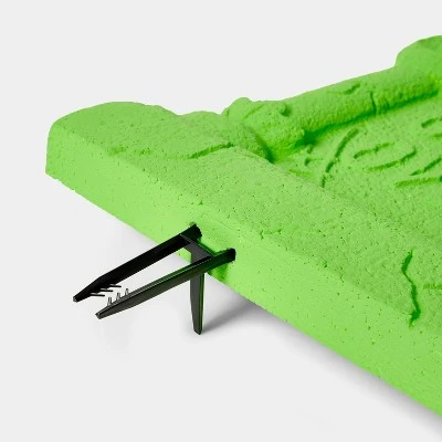 Create a haunted ambience anywhere around your home with this 4-Pack Colorful Foam Halloween Decorative Tombstone Set from Hyde & EEK! Boutique™. This set of Halloween props feature four different designs of tombstones in pink, blue and green and orange colors. Ideal for indoor and outdoor display, these foam props come complete with two metal stakes for securing them into the ground. You can place them next to your graveyard scene in your garden or somewhere indoors to liven up your spooky decor.