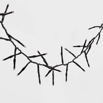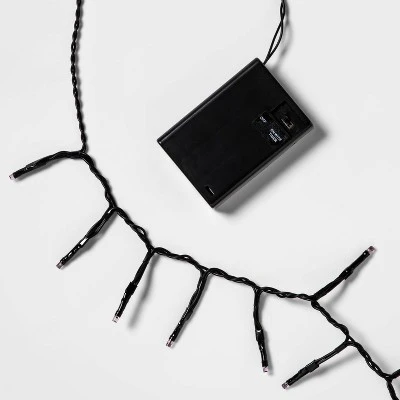 These versatile 60-Count LED Dewdrop Halloween Purple Garland Lights from Hyde & EEK! Boutique™ add instant magic to any indoor space. The delicate purple LED lights in a garland style with black wire look great draped on a mantel, framing a window or hanging above a bed. The attached battery pack requires three AA batteries (not included) and can be concealed within your decorations to let the lights truly stand out.