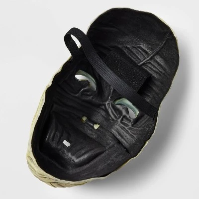 Pull a trick or two on your friends dressed as an undead, monstrous mummy with this Adult Light-Up and Sound Mummy Halloween Mask with Gloves from Hyde & EEK! Boutique™. This Halloween accessory set includes a green mask with hollow eyes and pointed, green teeth and two mummy hand gloves with decaying nails. The light-up and sound feature allows the eyes to glow with an eerie yellow tinge, while making a horrifying howling sound. Best of all, the mask is designed with an elastic strap, while the hook-and-loop straps on the gloves offer you the best fit.
