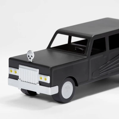 - Black hearse with skull Halloween decorative prop