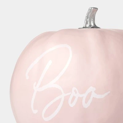 Delight your guests during Halloween with the Bootiful Painted Pumpkin “BOO” Halloween Decorative Figurine from Hyde & EEK! Boutique™. This pink pumpkin decorative figurine features the message “Boo” in white and comes with a silver-tone stem for a beautiful display. Made with foam, this painted pumpkin figurine can be placed on tabletop or shelf for decoration.