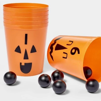 This Bucket Ball Toss Game Halloween Party Kit from Hyde & EEK! Boutique™ offers your kids a fun way to join in the spooky season festivities. Made of plastic, the festive game kit includes six orange buckets, six black balls, and an instruction sheet. Each orange bucket is adorned with a distinctive and funny jack-o’-lantern face and is stamped with numbers for keeping score.