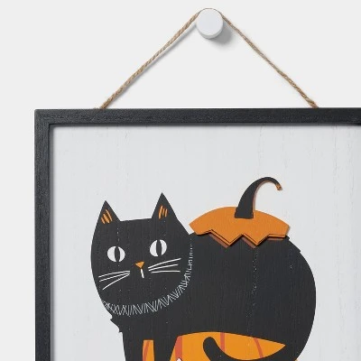 - Cat with pumpkin Halloween wall sign