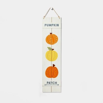 Put the perfect finishing touch to your festive decor with this Harvest Medium Reversible ‘Hello Fall’ Wood Sign from Hyde & EEK! Boutique™. Made from wood, this medium wood sign features the message “Hello Fall” that reverses to the text “Pumpkin Patch” with different kinds of pumpkins to add some seasonal flair. Hang the reversible wood sign on its own or with other harvest-themed decorative props for added fun.