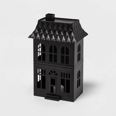 Add a creepy glow to your home with this Metal Townhouse Haunted House Halloween Decorative Sculpture from Hyde & EEK! Boutique™. Made with metal, this black decorative sculpture mimics a haunted house to add a perfect finishing touch to any Halloween scene. Simply place this haunted mansion decorative sculpture on the tabletop or above the mantel with the Haunted House Halloween decorative sculpture and the Haunted Mansion Halloween decorative sculpture to create a spooky setting.