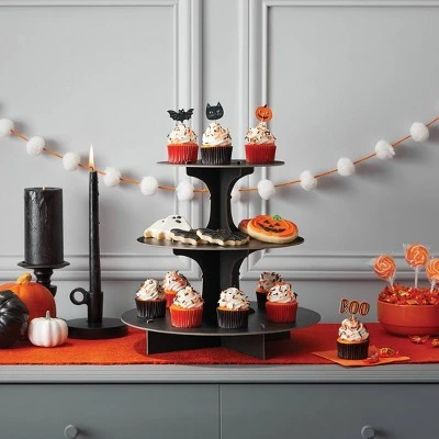 This Paper Baking Tiered Cake Stand from Hyde & EEK! Boutique™ is the perfect accessory for Halloween desserts. This disposable tiered cake stand lets you display cupcakes, cookies and more on a tabletop or countertop for a Halloween party or family gathering. The cake stand is made of paper, so you can simply throw it away after use.