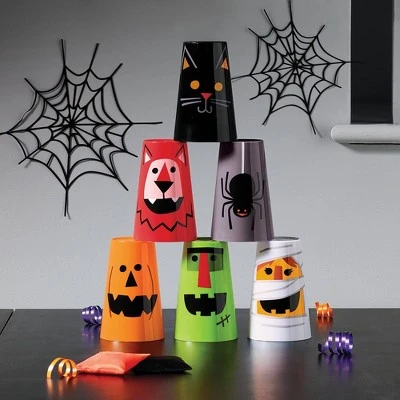 With this Plastic Cup and Bean Bag Toss Game Halloween Party Kit from Hyde & EEK! Boutique™, your Halloween party will be a smashing success. The festive game kit includes six plastic cups with assorted-color, spooky-sweet designs, including jack-o’-lantern, spider and more as well as two bean bags in solid orange and black. Recommended for ages 3 and up, it’s fun for the whole family.
