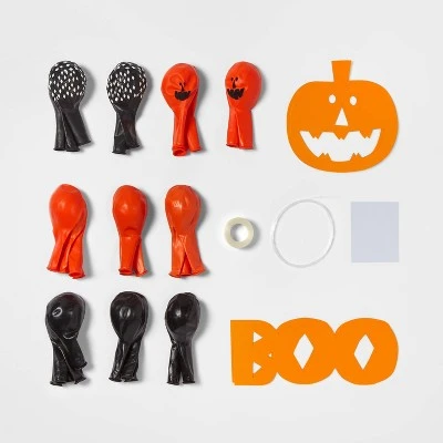- Includes orange and black balloons, some with "BOO" text and jack-o-lantern faces