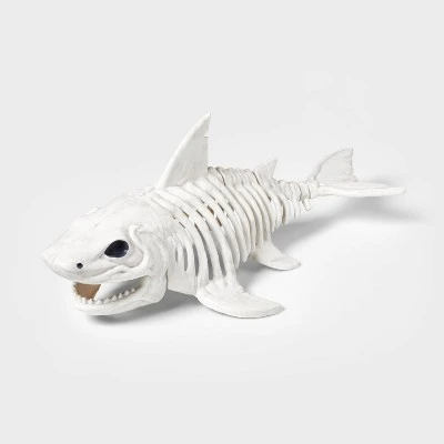 Add more fright to your Halloween display with this Shark Skeleton Halloween Scene Prop from Hyde & EEK! Boutique™. This decorative skeleton prop makes an exciting addition to your seasonal decor. It features a realistic skeleton model of a shark in a white finish for a creepy, ocean-themed look. Just place it on a console table or anywhere outdoors to greet guests with a unique Halloween accent.