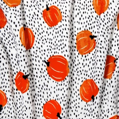 Decorate your home for the fall season with the Tossed Pumpkins Printed Plush Halloween Throw Blanket from Hyde & EEK! Boutique™. This printed throw blanket is covered with illustrations of orange pumpkins on a speckled black-and-white backdrop for a festive look. Made with soft fabric, this lightweight blanket is perfect for snuggling up while enjoying your favorite beverage or just relaxing after a long day.