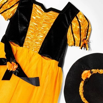 They’ll love trick-or-treating in wicked style wearing this Adaptive Witch Halloween Costume Dress with Hat from Hyde & EEK! Boutique™. The hook-and-loop closure at the back of this witch dress allows for easier dressing and can provide access to the body or other objects and devices. Made from lightweight fabric for comfort, this witch costume features an orange dress with floral belt at the waist, along with a floral trim hat. Perfect for any Halloween event that calls for a costume, this witch outfit offers a cute and comfy look in a fun Halloween color palette.
