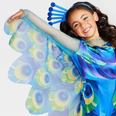 This Posh Peacock Halloween Costume Dress with Headpiece from Hyde & EEK! Boutique™ gives your kid a unique and colorful option for Halloween. Made from lightweight fabric to keep them comfy during trick-or-treating, this costume showcases a blue ankle-length dress with colorful peacock patterning and mesh long sleeves with attached wings, and it also comes with a blue peacock headpiece. They can add coordinating makeup and shoes of their choice to complete the look.