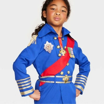 Your kid can take on Halloween looking and feeling like royalty with this Royal Prince Halloween Costume Top from Hyde & EEK! Boutique™. Made from soft, lightweight fabric in blue with shiny gold accents, the collared uniform features a red sash, gold-tone buttons and various medals, and it’s also equipped with belt loops for the included blue and gold belt. Designed with a length that hits below the knees, this prince costume top can be paired with dark-colored pants and high black boots to complete the history-inspired look.