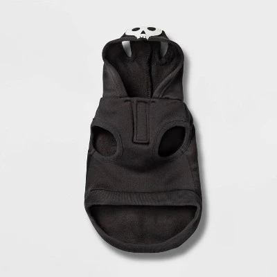 - Black onesie with hood and skeleton features