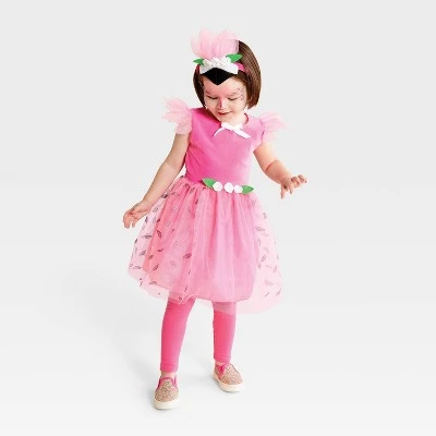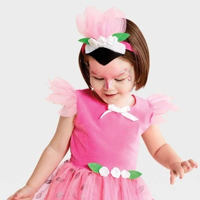 Dress your toddler in cute style as they gather candy on Halloween night with this Flamingo Halloween Costume Dress with Headpiece from Hyde & EEK! Boutique™. Made from lightweight fabric for comfy wear, this Halloween costume set includes a pink dress with bow-tie, sparkly cap-sleeves, mesh skirt and floral detailing on the waist and floral headband — everything needed to make them look like a cute flamingo. Pair this flamingo costume with pink tights and sparkly sneakers to complete the look.